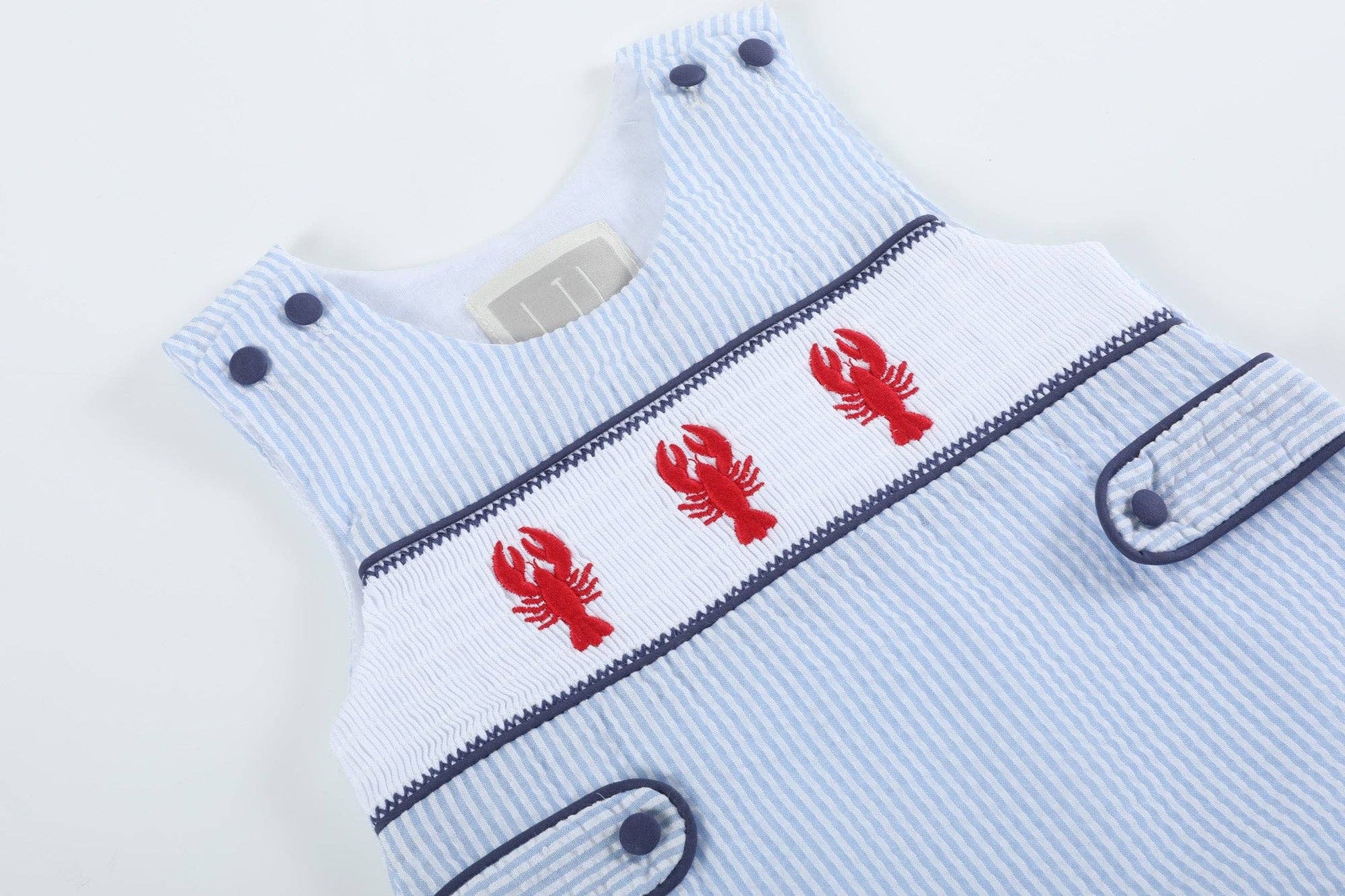 Blue Stripe Crawfish Smocked Shortalls