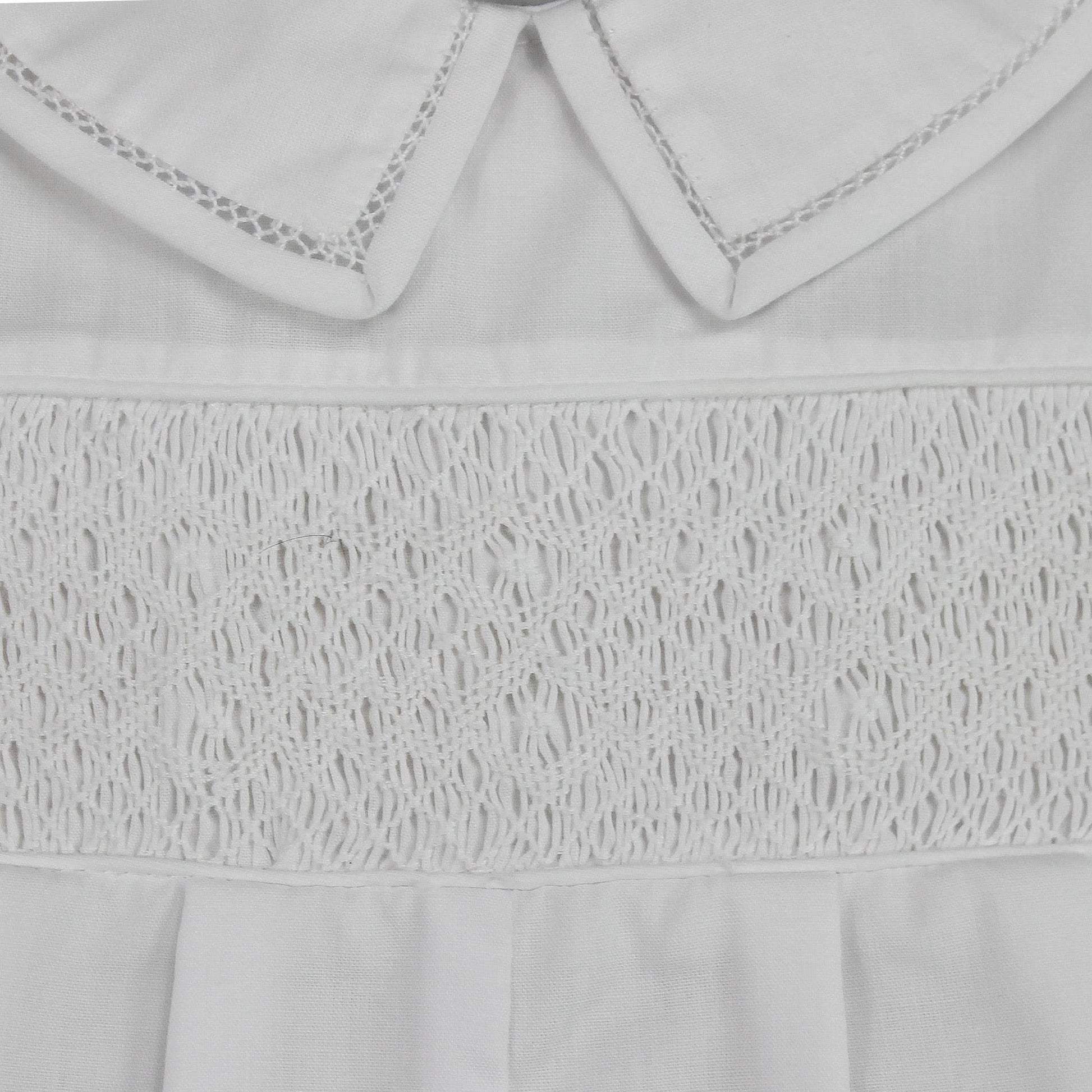 Featuring heirloom-quality details like smocking at the chest and faggoting on the collar, this piece is sure to become a treasured keepsake.