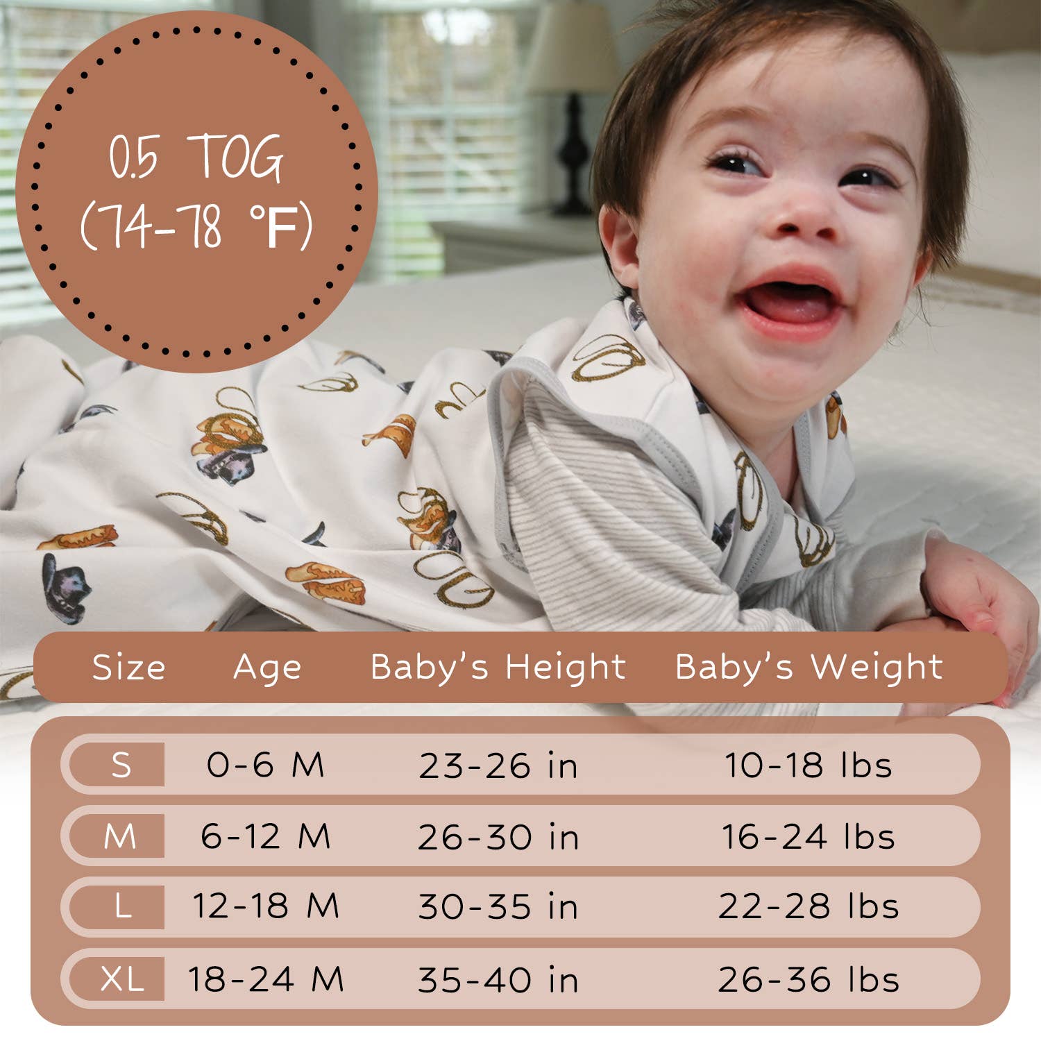 SUITABLE FOR INFANTS 0-24 MONTHS: Four size options are available.