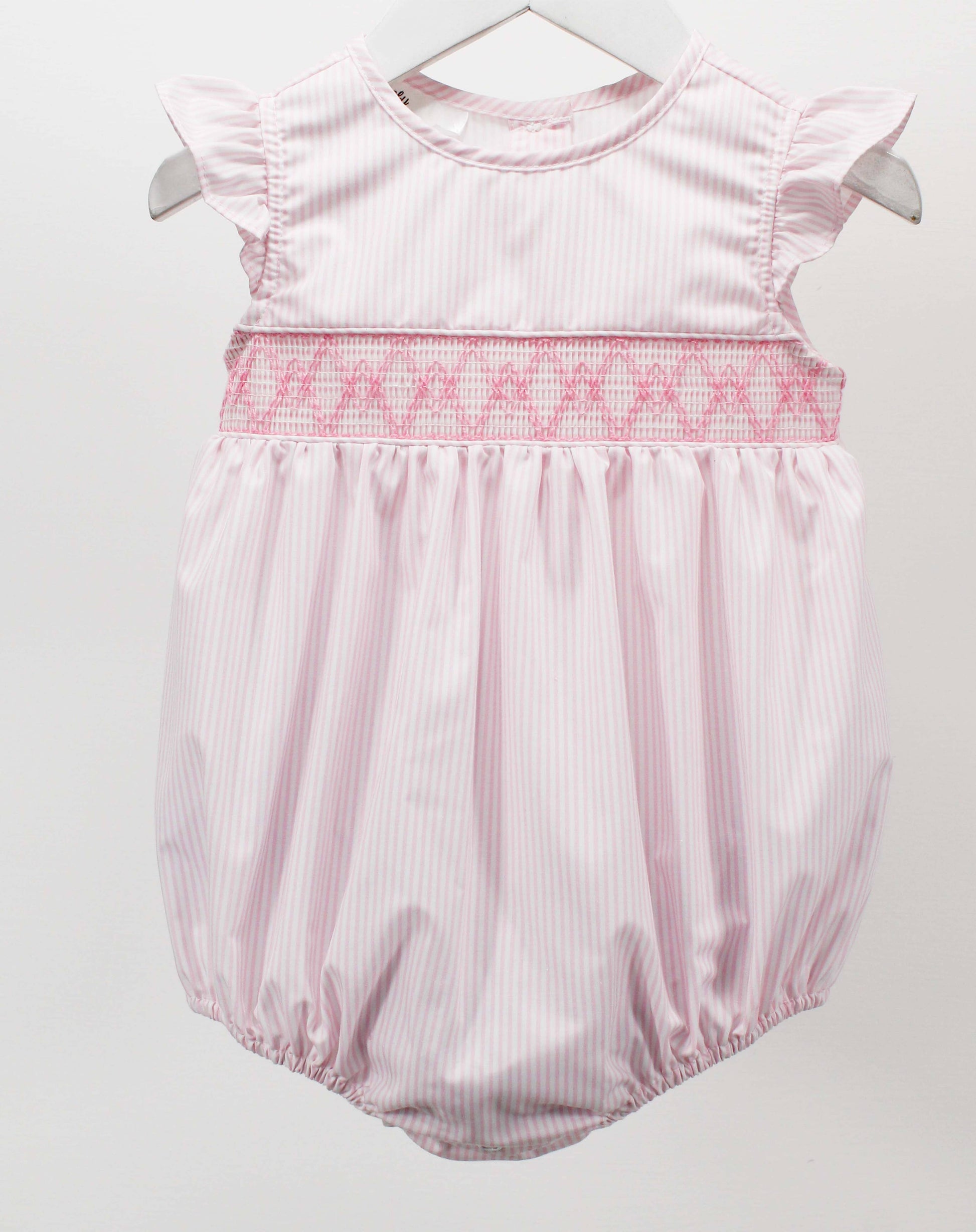 The Pink Geometric Nora Bubble for a baby is likely a charming and comfortable outfit designed to provide ease of movement and a stylish aesthetic.